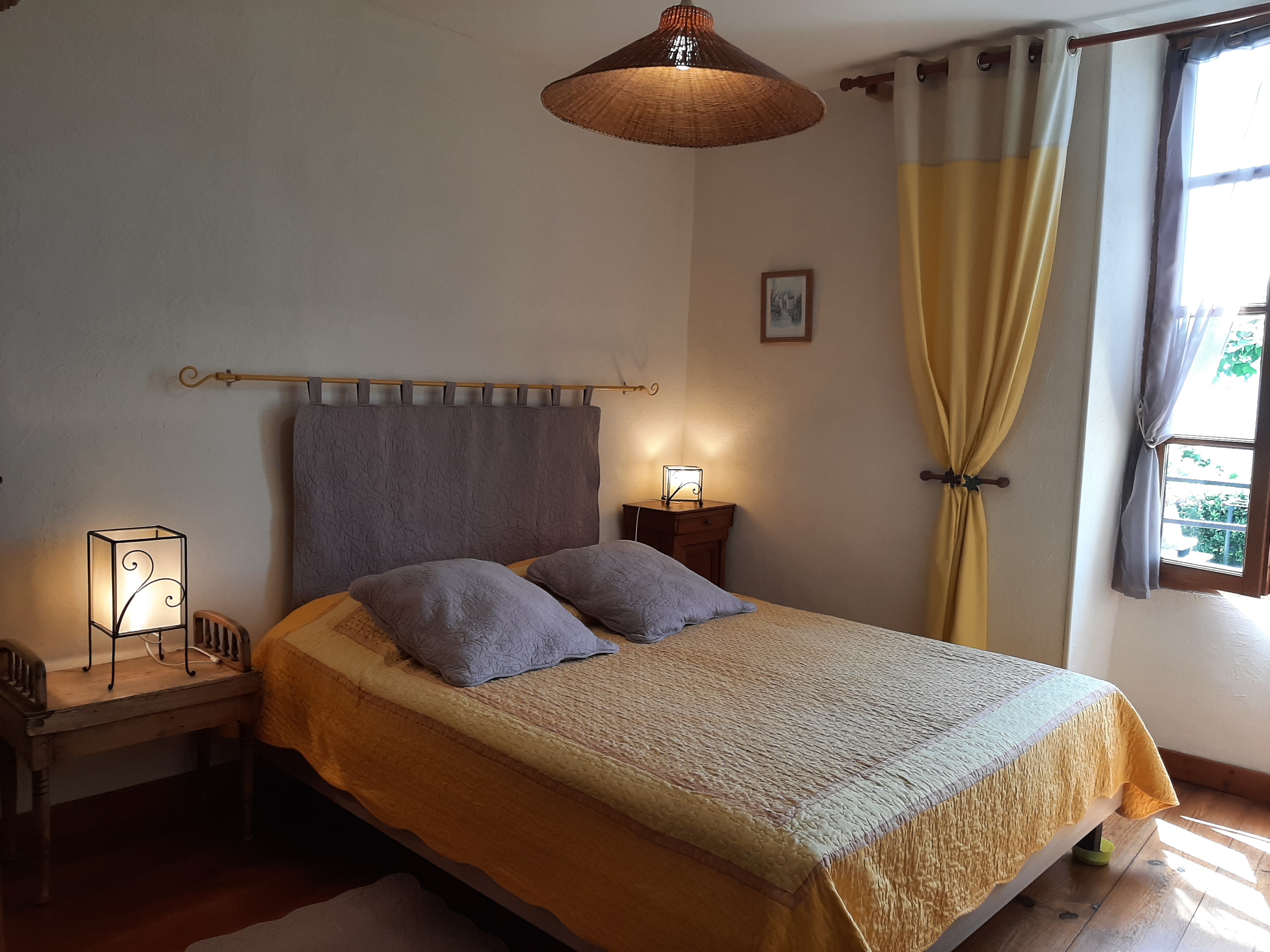 Gîte La Source, adjoining owner's home on property in peaceful, unspoilt setting. Leisure area with wooden swimming pool (6m diam) overlooking hamlet with fine panoramic views of Monts d'Ardèche. Private garden, various games, free tennis (2km). Very comfortable gîte on 2 levels: lounge (books, games, exposed stone walls cool in summer, warm in winter at fireside), living room with kitchen area, master bedroom, 2nd bedroom (double bed, single bed), bathroom, WC. Linen supplied. Pets allowed except in July/August (more info. on property details). Ideal for exploring the varied scenery of the Ardèche, its traditional villages, natural and cultural sights. Lots to see and do. Glass of wine and nibbles on arrival.