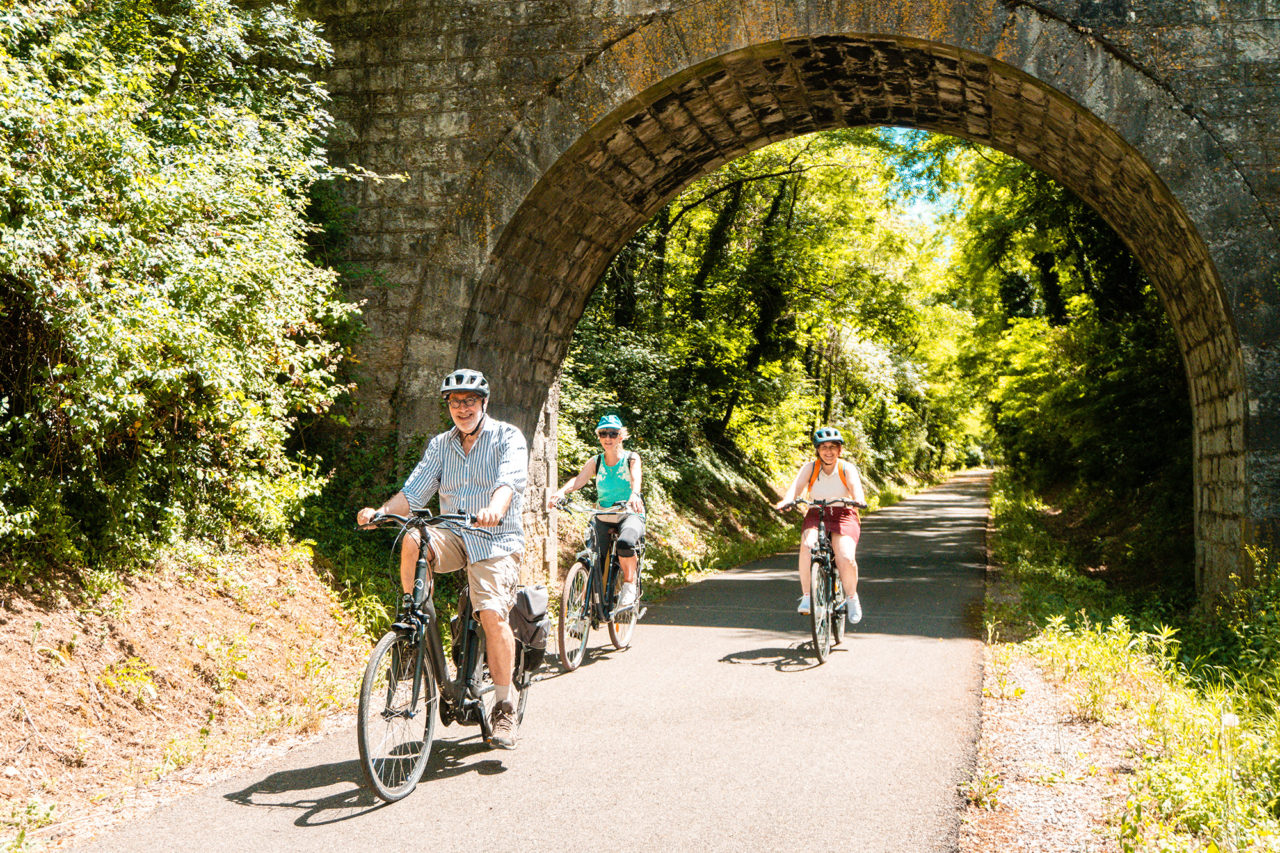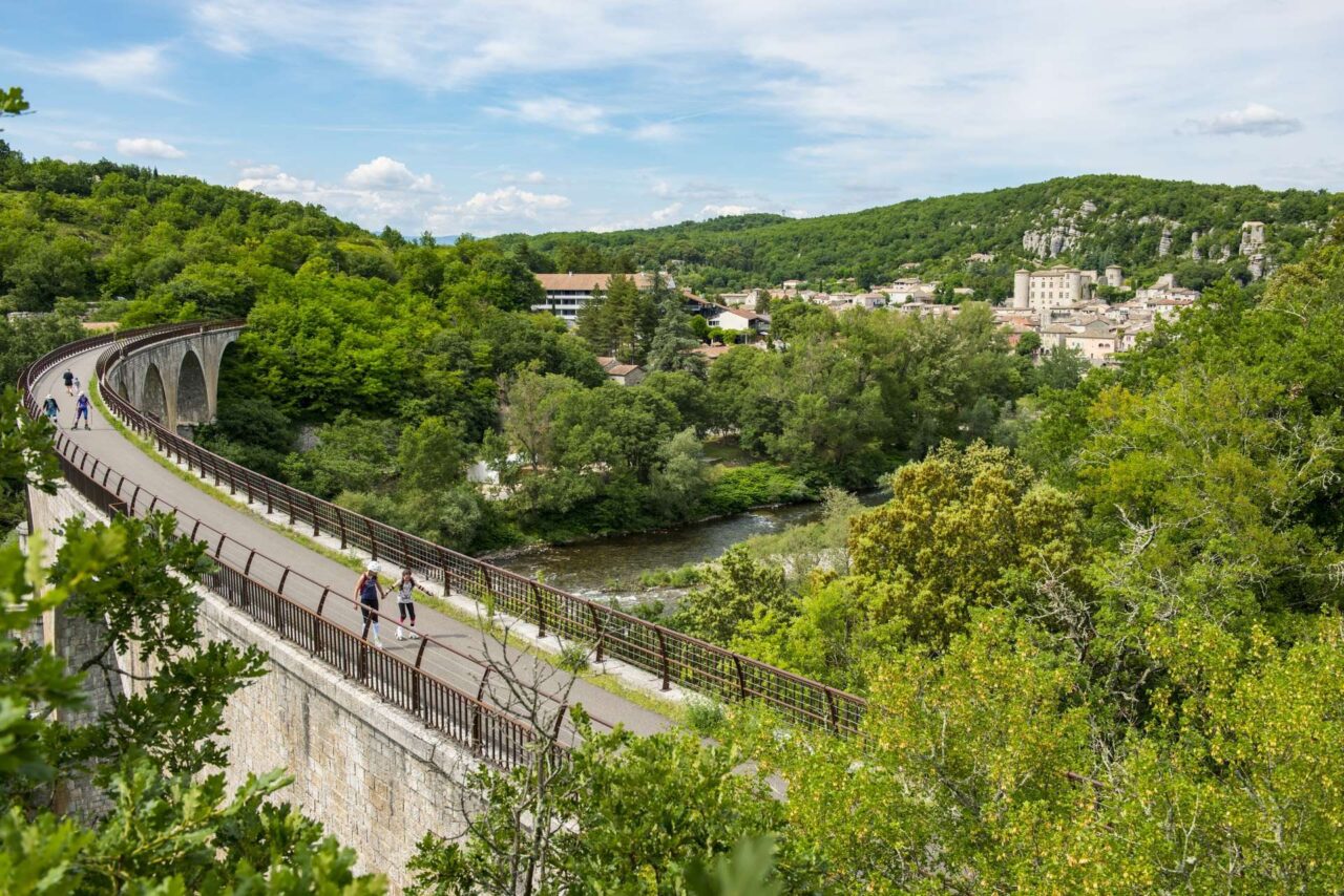 La Via Ardèche suit le tracé d’une ancienne voie ferrée, entièrement réaménagée pour les mobilités douces. Résultat : un parcours fluide, régulier… et surtout plein de surprises.