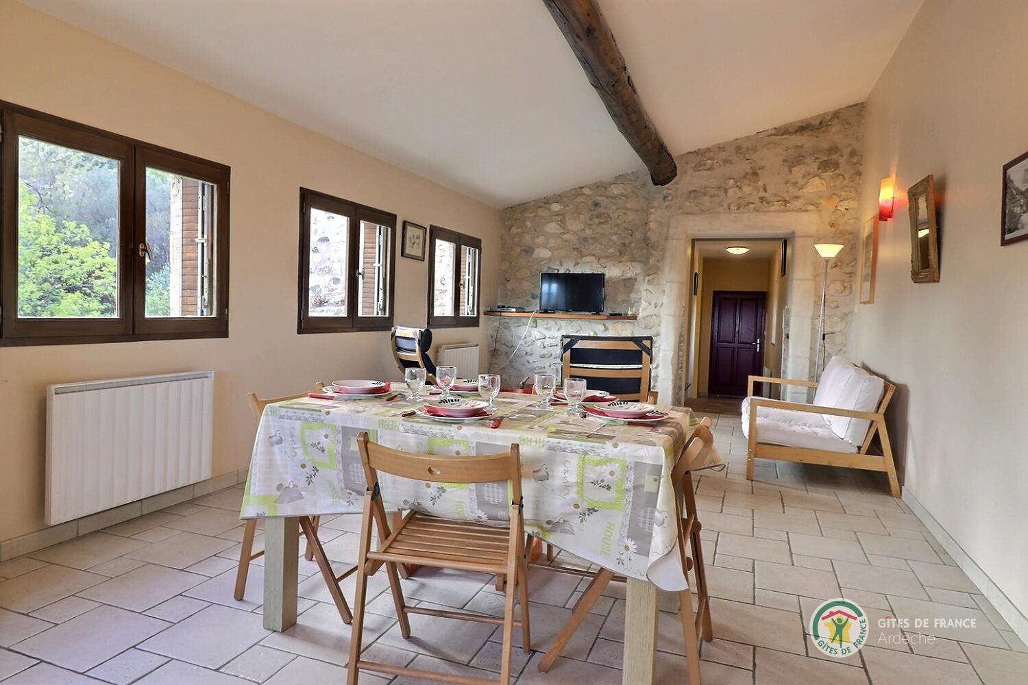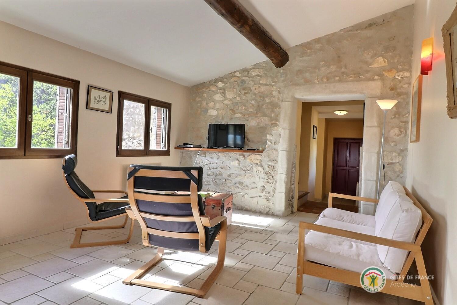 Gîte de très grand confort aménagé dans une ancienne maison en pierre, au pied des fortifications du château de Rochemaure. Vous accédez au gîte par les anciennes ruelles du village médiéval. Le gîte a une belle terrasse mi-couverte aménagée sur les to... (lire plus)