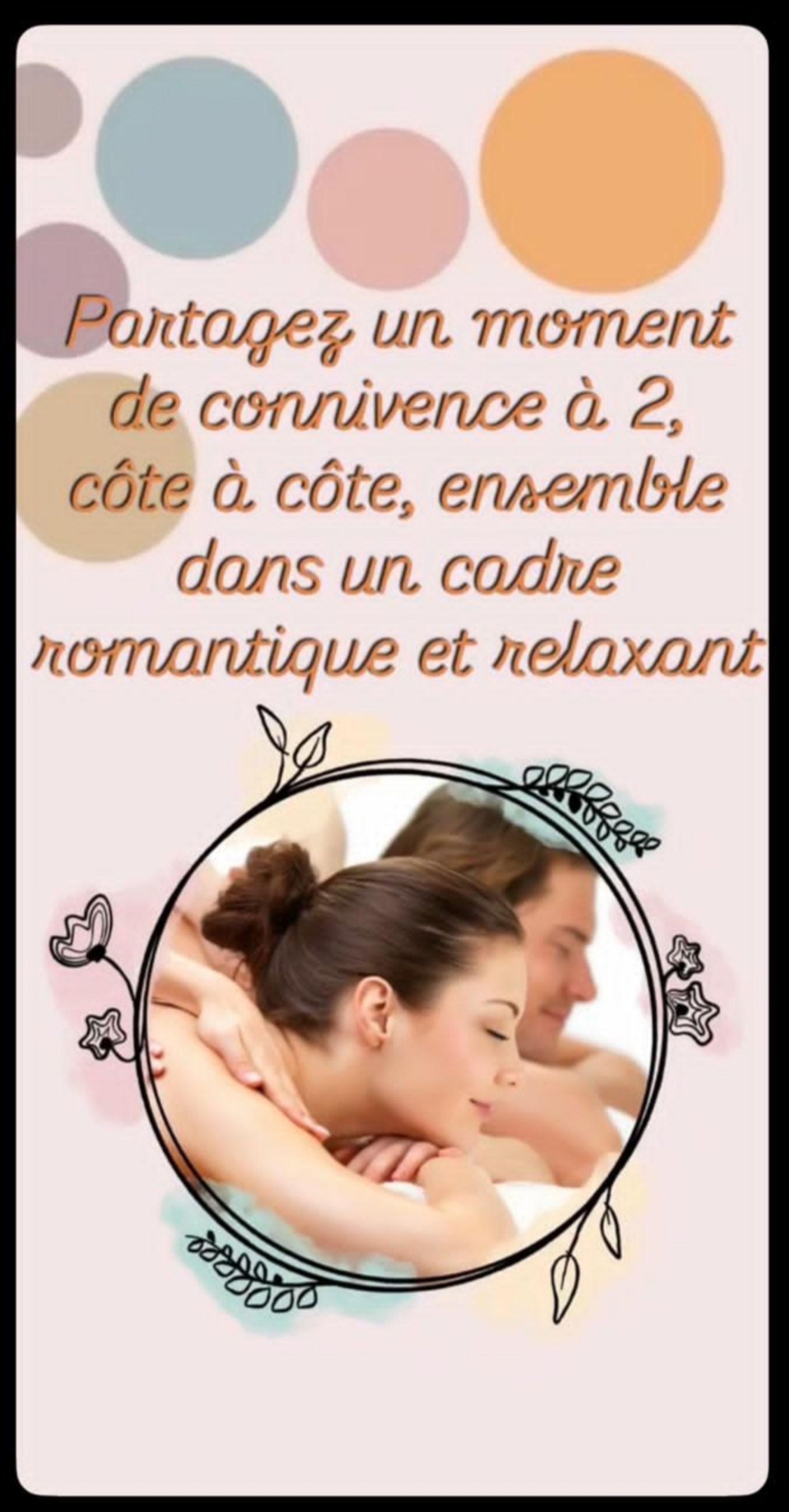 Faites vous masser côte à côte avec la personne de votre choix : votre amoureux.se, votre sœur, votre maman, votre enfant, votre meilleure amie, votre cousine préférée ... ❣️