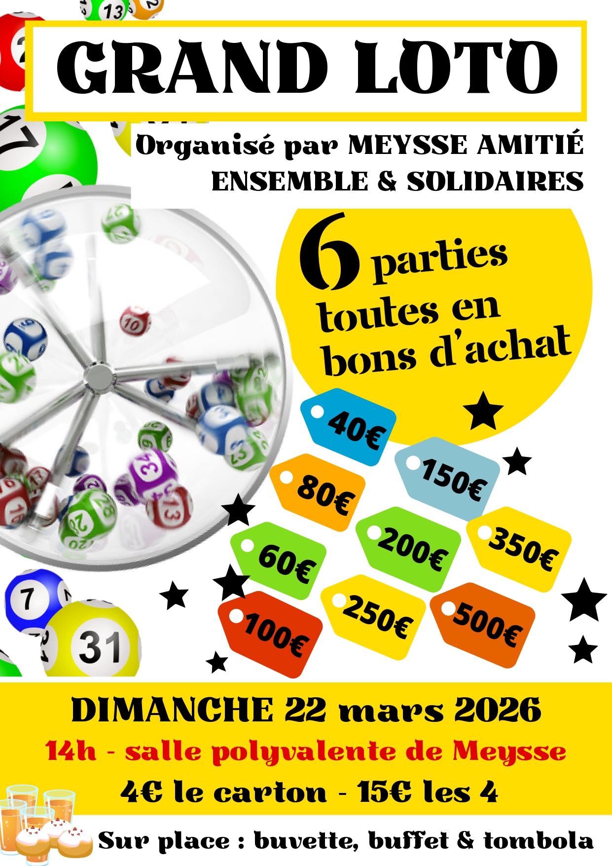 Grand loto organisée par l'UNRPA, avec un nouvel équipement pour un loto inoubliable. De nombreux lots à gagner. Buvette et petite restauration sur place.