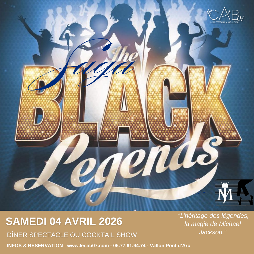 Le CAB 07 accueille « The Saga Black Legends » pour la dernière date de la saison. Ce dîner spectacle retrace les grandes légendes de la musique, avec un passage marquant dédié à Michael Jackson. Samedi 4 avril à Vallon-Pont-d’Arc. (lire plus)