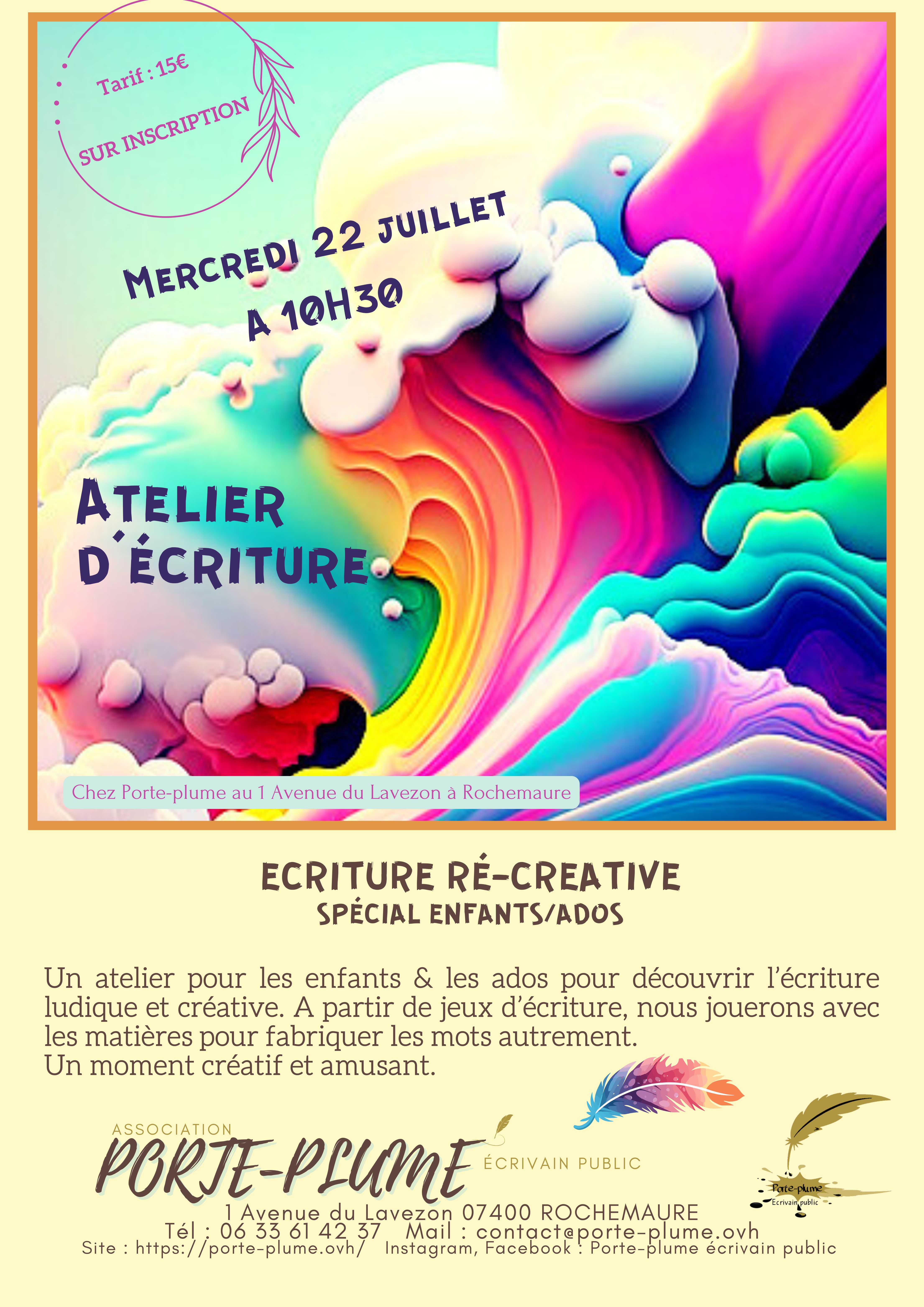 Atelier d'écriture ludique et créative pour enfants et ados.