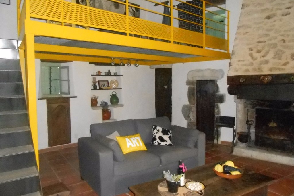 Grand séjour de 50m² plein sud avec cheminée, coin repas, bibliothèque, TV, LL, salle de bains, toilettes. Cuisine indépendante équipée. Chambre en mezzanine (lit 2 pers.) + canapé lit dans le séjour. Jardin et terrasse privés 25m², salon de jardin, barbecue. Meubles anciens et œuvres originales d'artistes. Plan d'eau 2km. Piscine municipale 6km. Canoë-kayak, golf 20km.