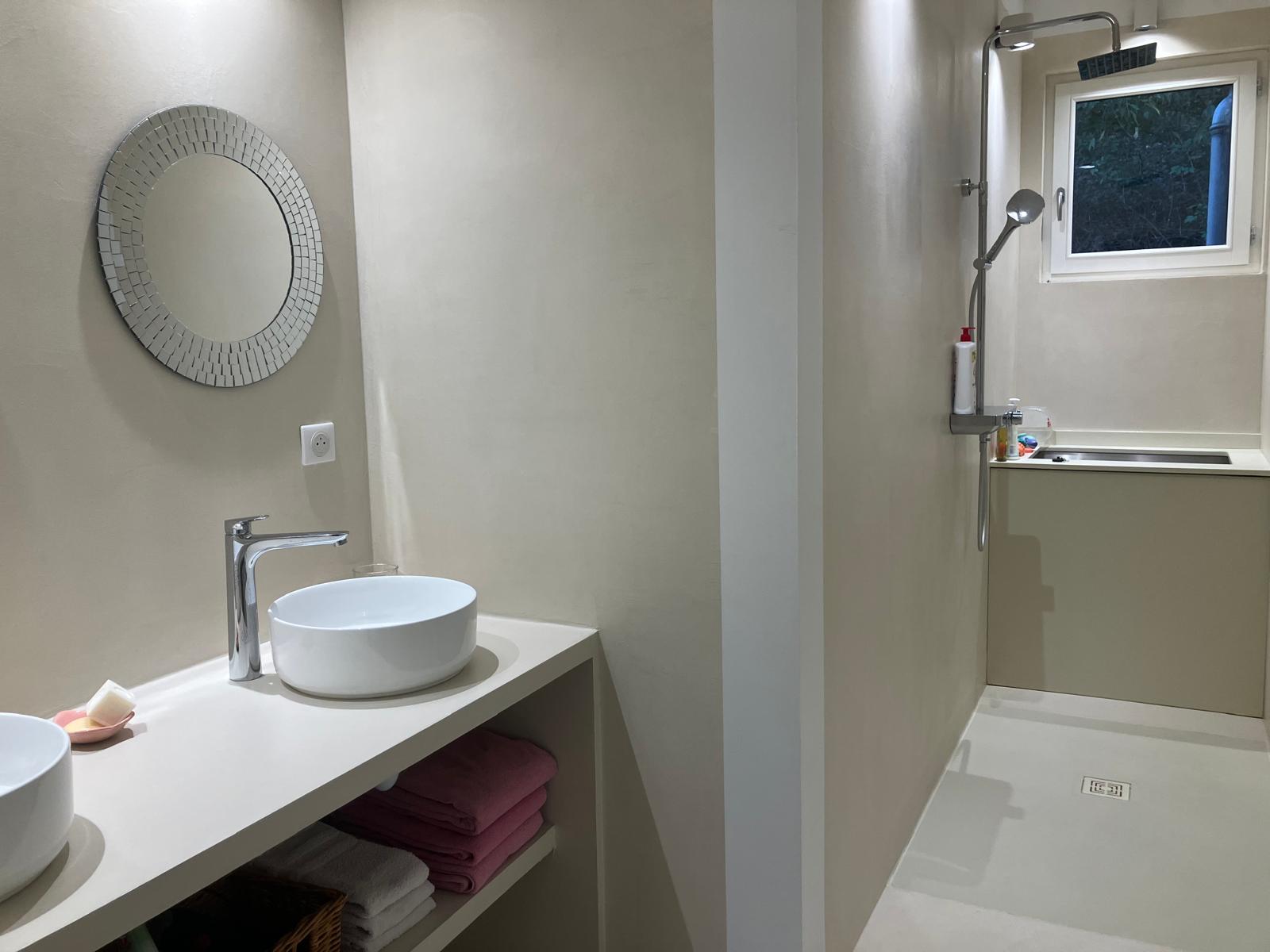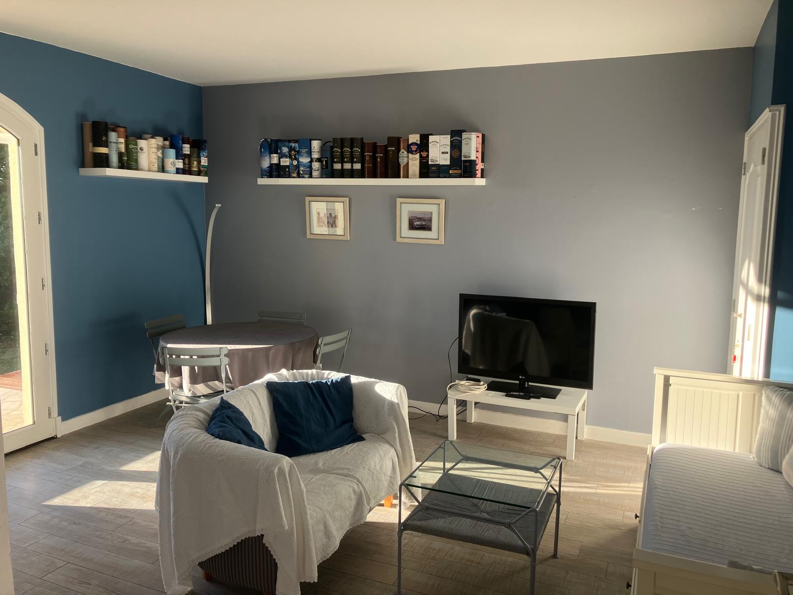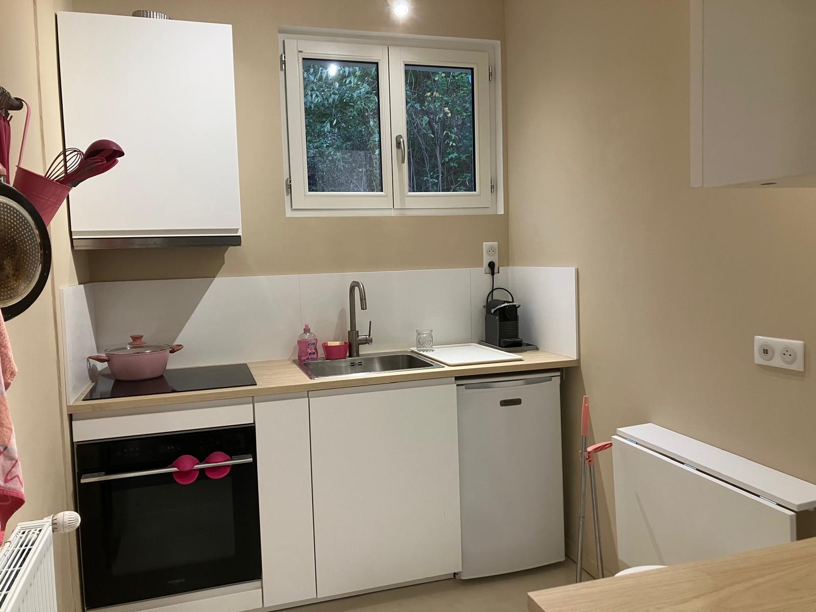 Appartement de 90m2 : 2 chambres , 1 séjour, 1 salle de bain, 1 cuisine et des toilettes indépendantes + 1 terrasse plein sud. L'appartement est l'aile d'une maison particulière sur un terrain de 3000m2. L'appartement a son entrée indépendante. Les locataires ont la jouissance de leur terrasse mais pas du jardin. Possibilité de garer une voiture dans la propriété.