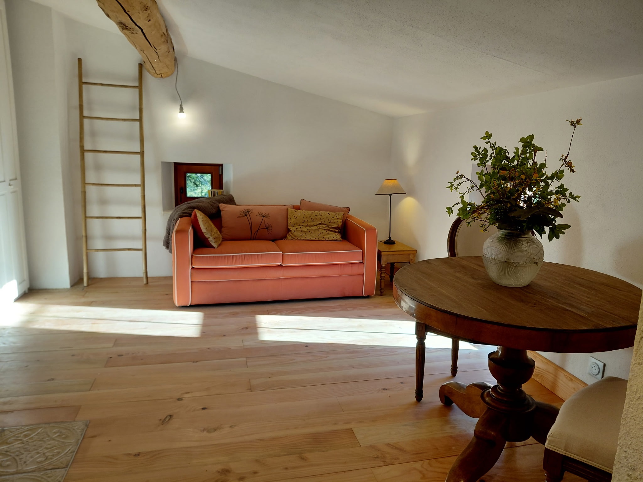 Ce gîte est attenant à deux autres. Les trois gîtes occupent le dernier étage de la maison, avec un accès privé et de plein pied par l'arrière de la bâtisse.