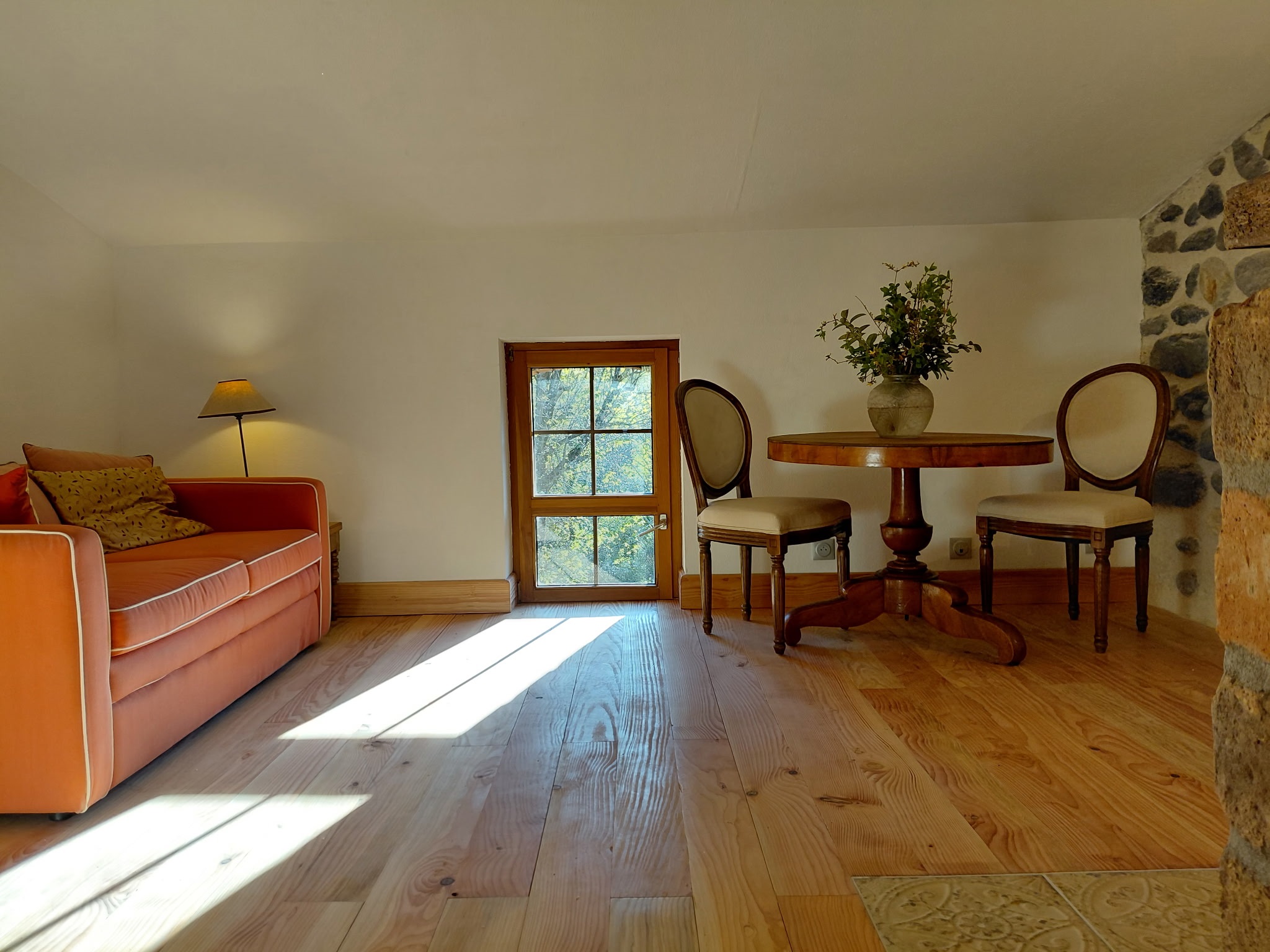 Studio tout confort de 26 m2, pour 2 à 4 personnes, dans une bâtisse du XVIIe bordée par une rivière.