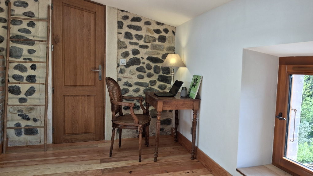 Ce gîte est attenant aux deux autres. Les trois gîtes occupent le dernier étage de la maison, avec un accès privé et de plein pied par l'arrière de la bâtisse.